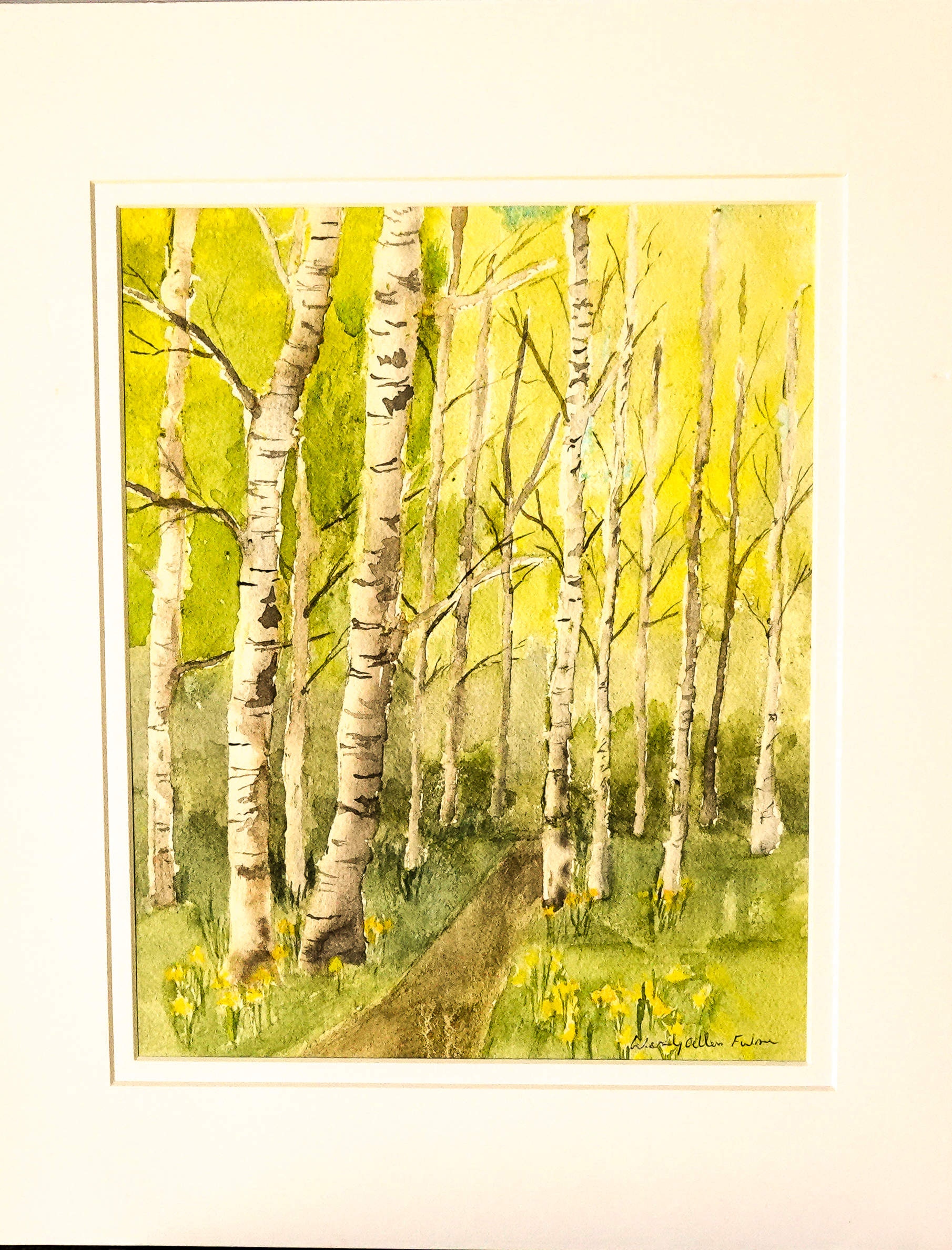 Daffodils are one of spring’s earliest flowers, a welcome sight after a long, cold dark winter and a symbol of joy, new beginnings and rebirth. Similarly, Birch trees are one of the first trees to leaf in spring or grow in disturbed soil. They represent fresh starts, growth, the ability to start anew and hope. Both of these are present in our original A Song For Spring Watercolor .